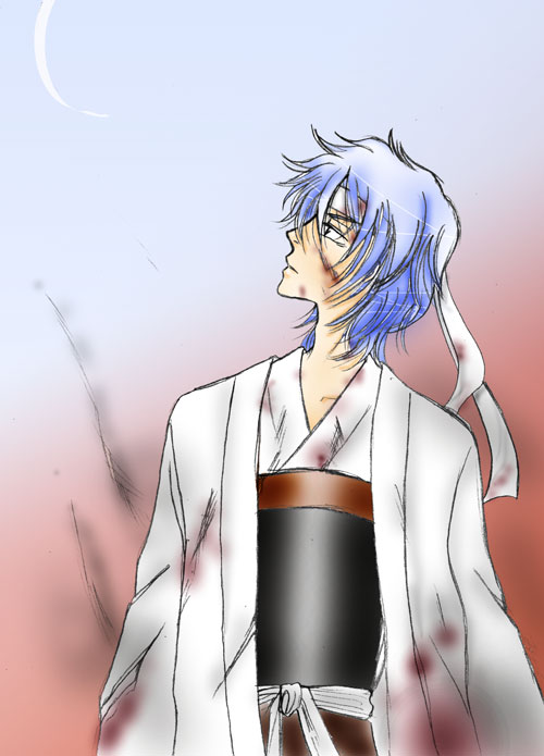 振り向き見上げた其処には、細い銀に光る月が浮かんでいるだけ。